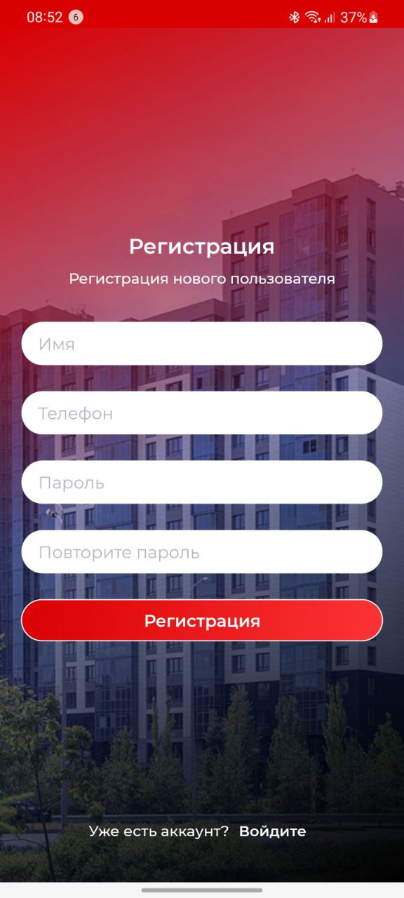 Если у вас еще нет учетной записи - необходимо зарегистрироваться в приложении заполнив форму регистрации. Чтобы перейти на страницу с формой регистрации нажмите на кнопку регистрация.